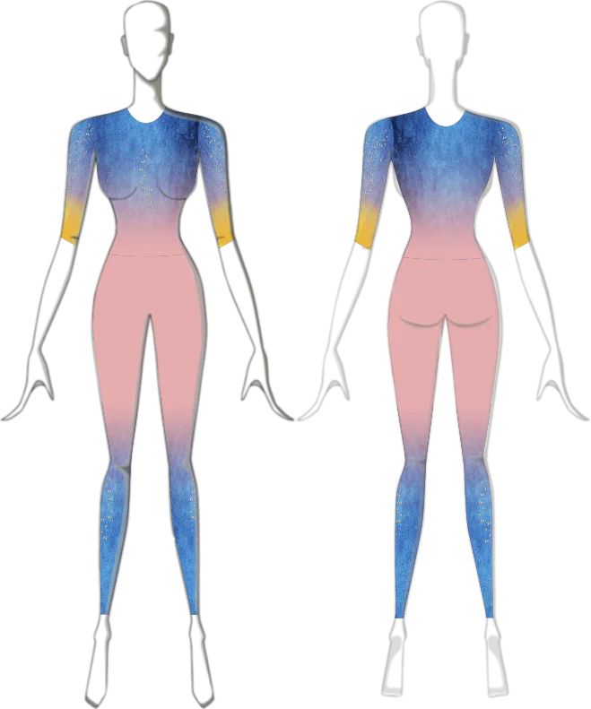 Macacão para Tecido Acrobático Textura Azul e Amarela